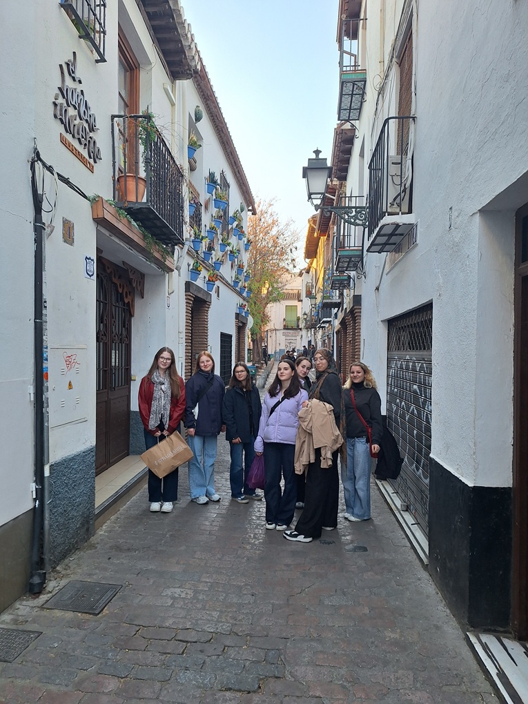 Am Montag fuhren wir in die Grundschule von Beas de Granada, wo wir herzlich empfangen wurden. Wir stellten den Kindern Flensburg vor, was sie besonders faszinierte. Nach der Schule erkundeten wir mit einer ehemaligen Schülerin Michelle den Stadtteil Albaicín und besuchten eine traditionelle Teestube.