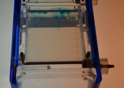 Trainiert wird zunächst das exakte Pipettieren extrem geringer Mengen an Flüssigkeiten. Später werden dann Proben der „Verdächtigen“ als auch „Spuren vom Tatort“ aufbereitet, indem sie mithilfe von Molekülen in kleine Erbgutschnipsel zerteilt werden. Ein Gel wird angemischt und gegossen.