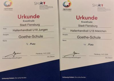 Wir sind stolz darauf, dass die Goethe-Schule Flensburg nach langer Pause wieder bei diesem traditionsreichen Wettbewerb vertreten war und freuen uns sehr, dass der Handballsport nun auch an unserer Schule wieder sichtbar ist. Dieses Turnier hat Lust auf mehr gemacht – und wir sind sicher: Das war nicht unser letzter Anpfiff!