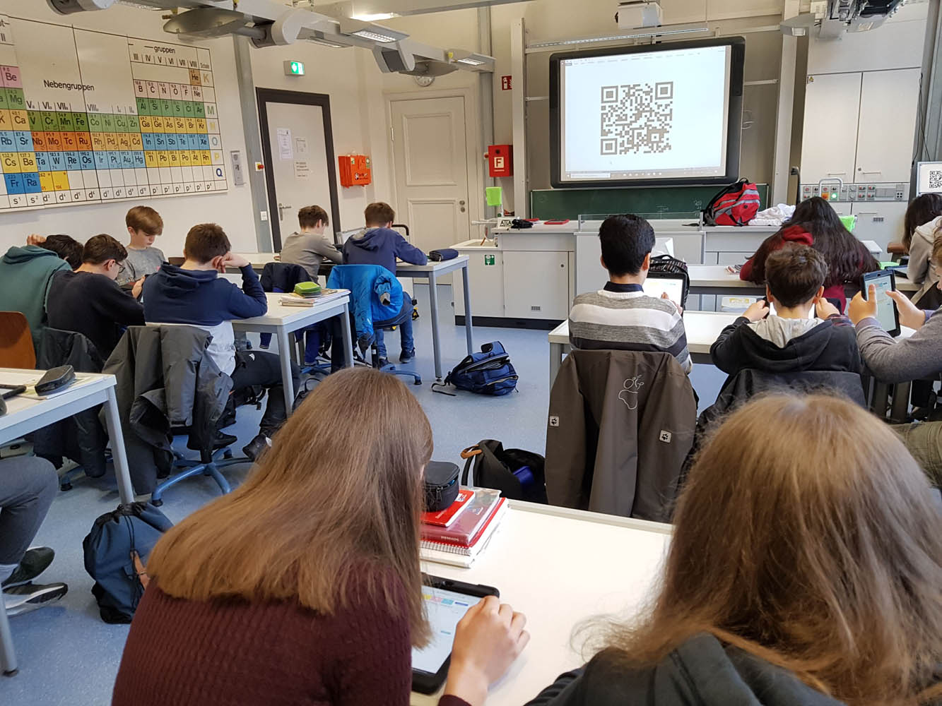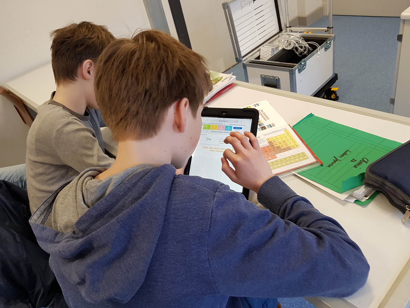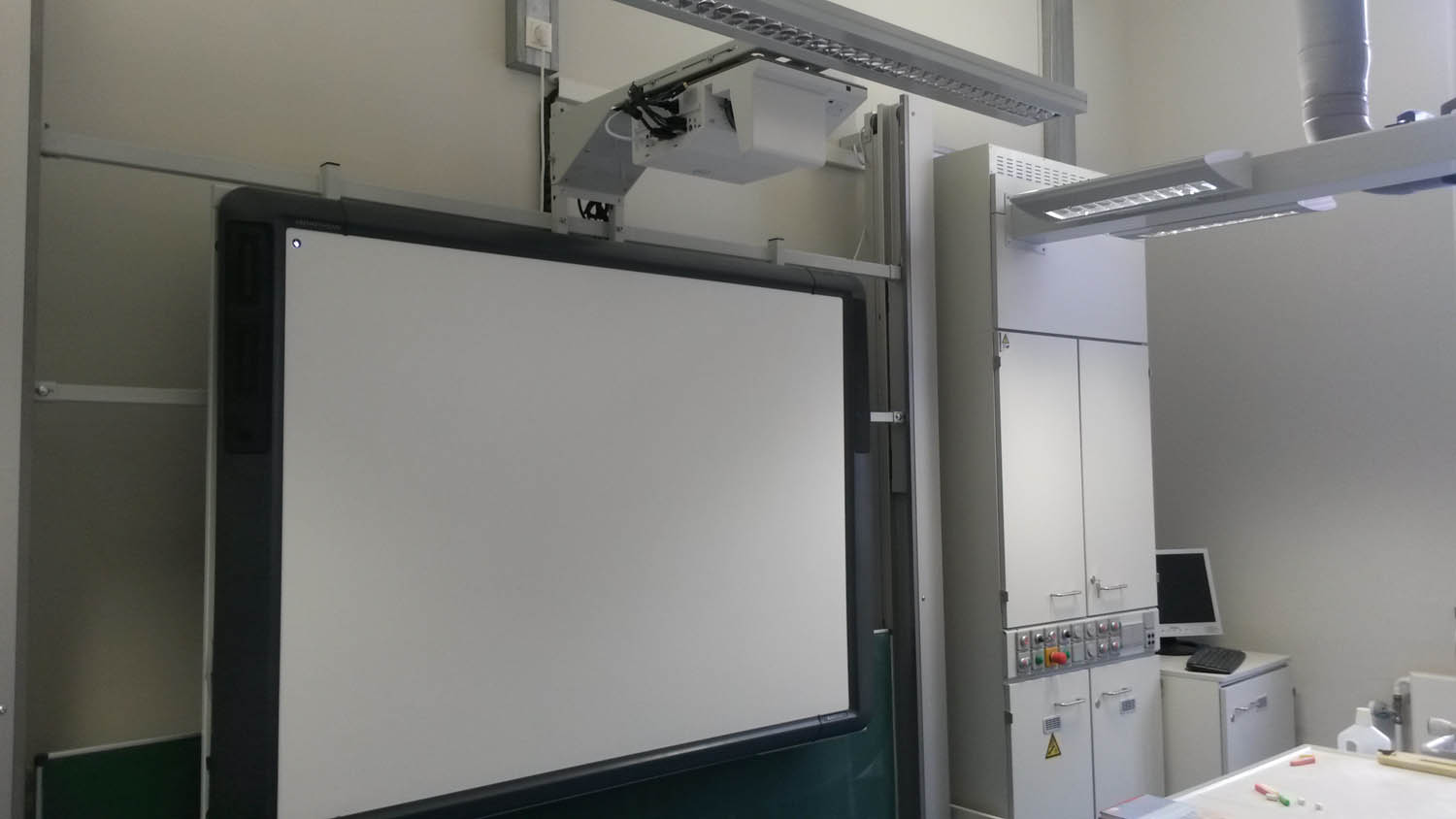 Auch medial ist der Unterricht auf der Höhe der Zeit. Beide Räume sind mit Activboards ausgestattet. Zugang zum Internet ermöglicht einen tagesaktuellen Unterricht, eine Kamera, die an den Beamer angeschlossen werden kann, macht selbst kleine Phänomene wie Kristallwachstum für alle sichtbar. Tablets ermöglichen individuelle Übungsphasen.