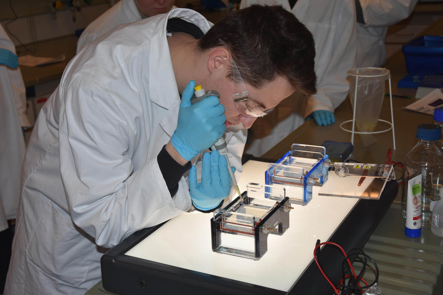 Besonders deutlich wird das unter anderem bei den Genetikpraktika, die alle Abschlussklassen an der Hochschule Flensburg durchführen. Vor Ort wird mithilfe von PCR und Gelelektrophorese ein genetischer Fingerabdruck erstellt und so die kriminalistische Arbeit von Spurensicherungsteams nachvollzogen.
