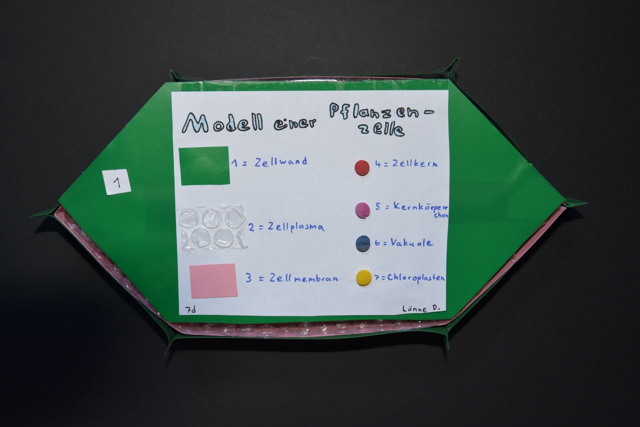 In Anlehnung an das o.g. Zitat wird im Biologieunterricht an der Goethe-Schule so viel wie möglich praktisch, aber vor allem auch mit allen Sinnen gearbeitet, d.h. betrachtet, untersucht, beobachtet, gesammelt, geordnet, verglichen und gemessen. In den siebten Klassen beispielsweise werden von der Schülerschaft individuell Zellmodelle gebaut, mit Legende versehen und kritisch betrachtet.