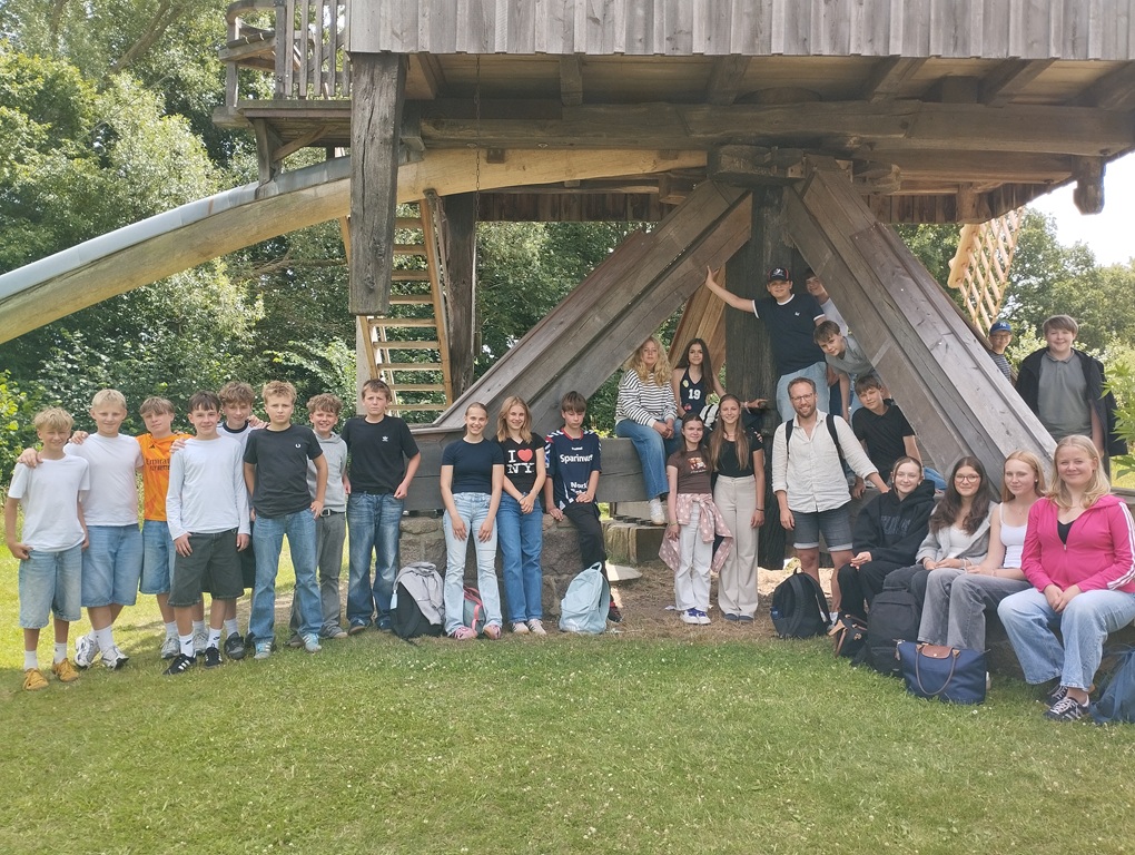 Am Mittwoch, dem 16.07.2025, unternahmen wir mit allen 7. Klassen zum Schuljahresabschluss eine Ganztagsexkursion zum Freilichtmuseum nach Kiel-Molfsee. Der Eintritt war durch die „Museums-Card“ frei und das Wetter super – besser hätte es nicht laufen können. In Gruppen aufgeteilt, mit einer Rallye versorgt, erkundeten wir darauf das riesige Gelände und entdeckten auch einige Dinge, die wir vorher im Geschichtsunterricht besprochen hatten. Am schönsten waren jedoch der Streichelzoo und der alte Jahrmarkt, weil wir hier u.a. die Schiffsschaukel nutzen durften. Ein gemeinsames Picknick mit Rückschau auf unser schönes Schuljahr durfte natürlich auch nicht fehlen. Insgesamt war es zum Schuljahresabschluss ein sehr schöner Tag an der frischen Luft mit viel Entspannung und Sonnenschein. Vielen Dank an unsere Lehrkräfte Frau Bien, Herrn Esmann, Herrn Gildenast und Herrn Krüger, die diesen schönen Ausflug mit uns durchgeführt und organisiert haben. Nun freuen wir uns auf die Sommerferien und dann auf das 8. Schuljahr.