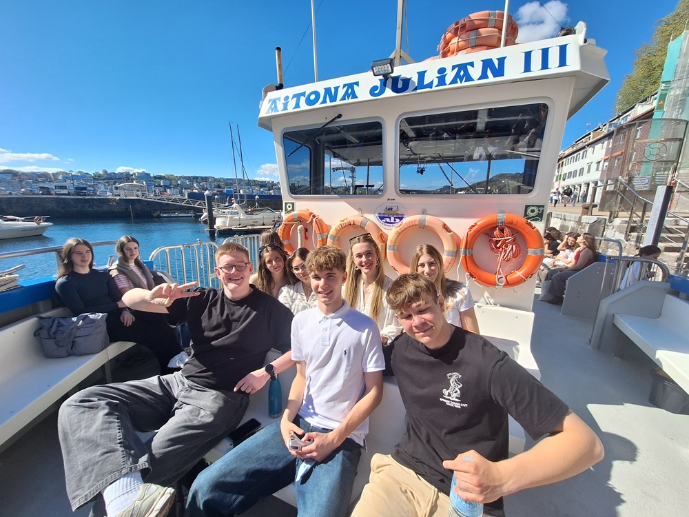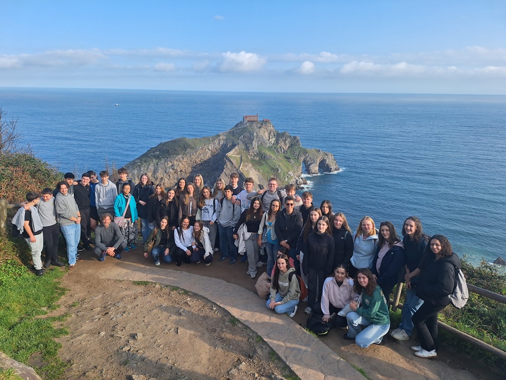 Der Austausch nach Bilbao begann mit einer herzlichen Begrüßung der Eltern unserer Austauschschüler. Die meisten wurden abgeholt und lernten wahrscheinlich ihre ersten Worte baskisch. Am nächsten Morgen wurden wir vom Schulleiter begrüßt und wir lernten baskische Traditionen (Musik und Tanz) kennen. Das Guggenheim Museum in Bilbao war unser nächster Halt. Dort konnte man Einblicke in moderne Kunst und faszinierende Bauwerke erfassen. Die eigenständige Stadttour ließ uns einen individuellen Blick auf Bilbao werfen. Mittwoch war der berühmte „Spot“, wo Game of Thrones gedreht wurde, an der Reihe. Gaztelugatxe ist ein Kloster auf einem Felsen nicht weit entfernt von Mungia, auf welchen man zu Fuß gelangen konnte. Das war zwar anstrengend, aber auch diese Anstrengung wurde belohnt.