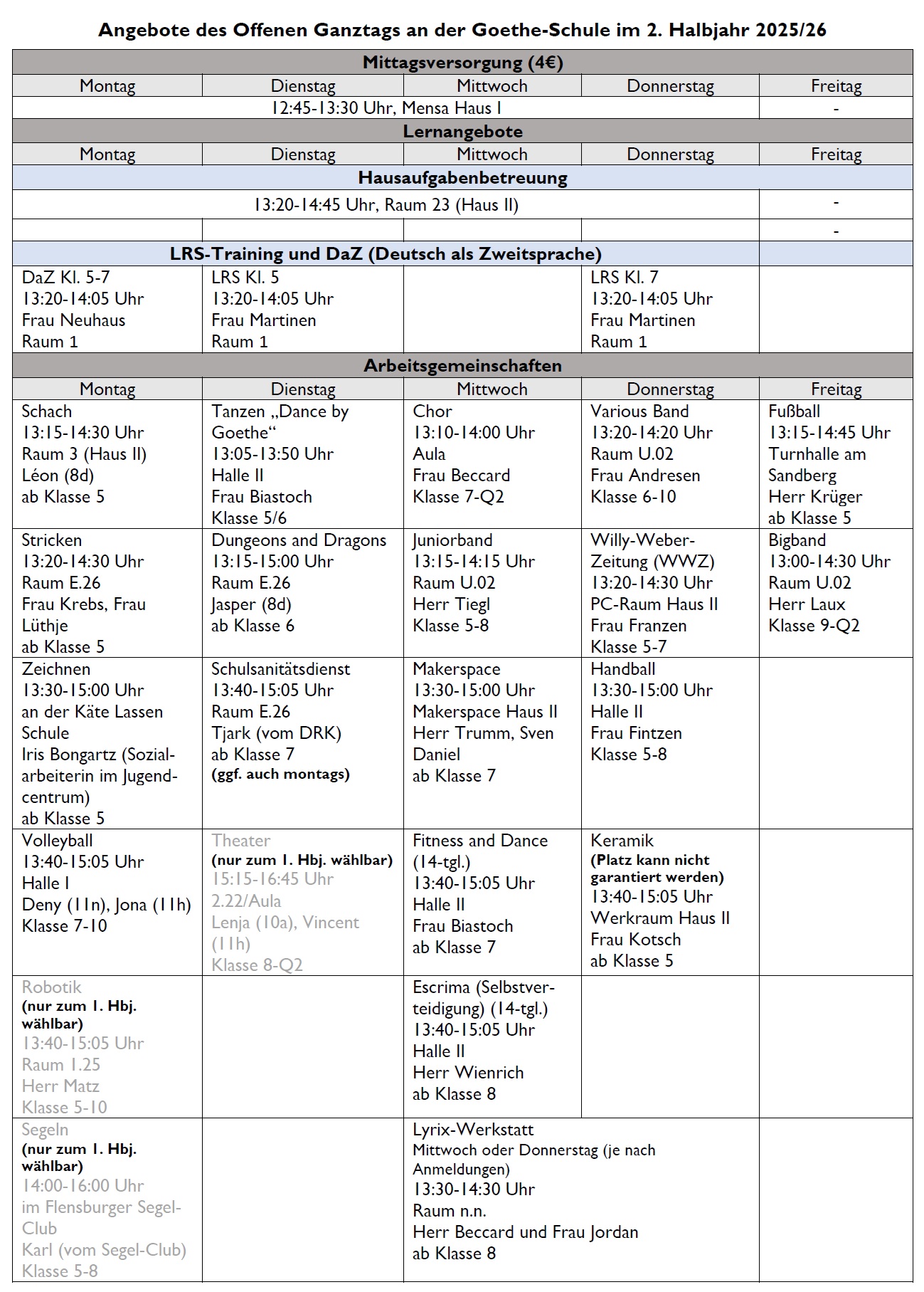 ab dem 27. Januar 2026 könnt ihr euch hier zum neuen Halbjahr zu einer oder mehreren AGs und der Hausaufgaben- bzw. Freizeitbetreuung anmelden.